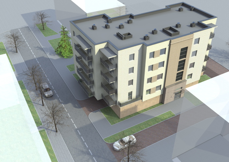 BUDYNEK MIESZKALNY WIELORODZINNY Z GARAŻEM W PARTERZE Zgierz, ul. Rembowskiego 31Architektura: